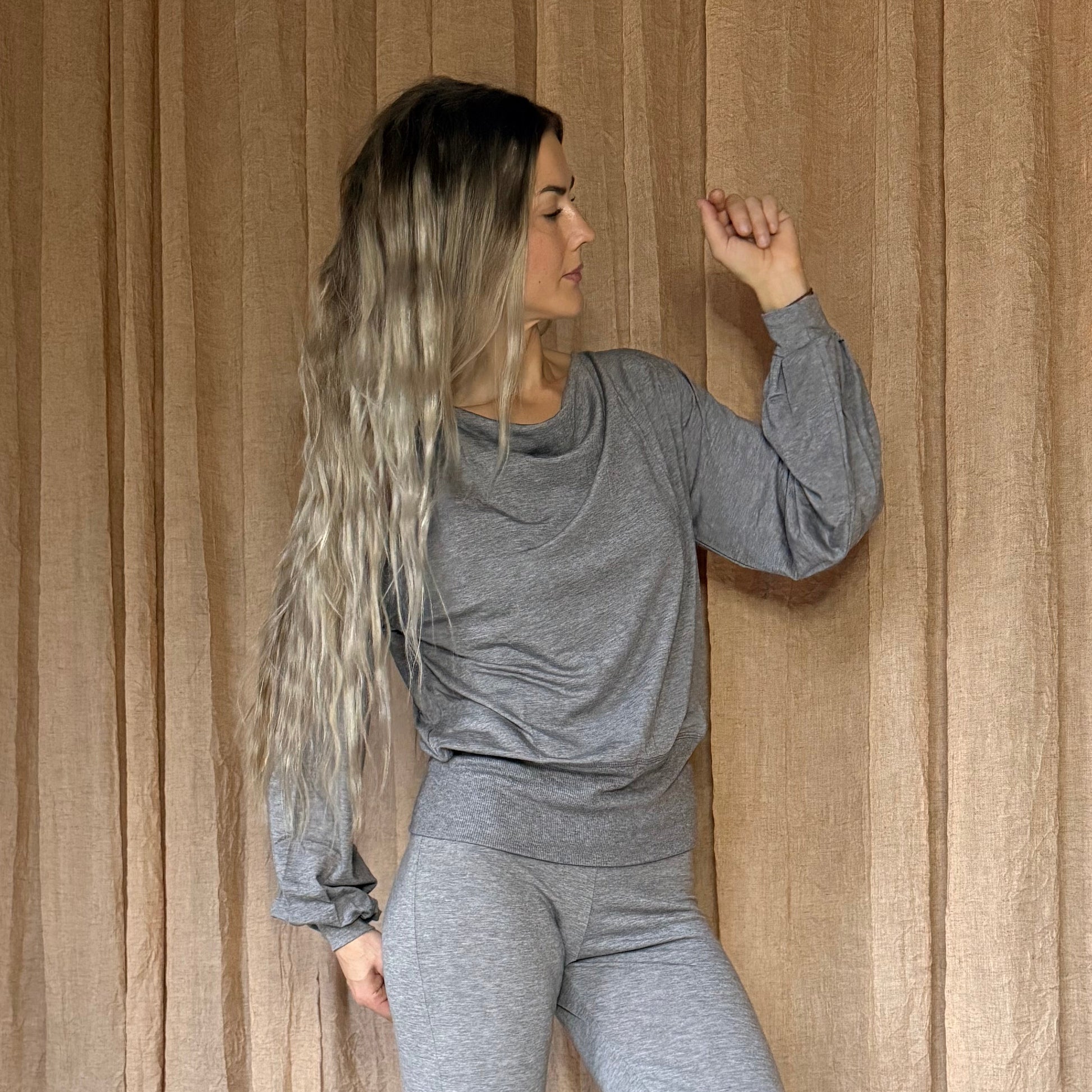 En elegant og tidløs genser med en sofistikert, løs halsåpning og vide ermer som gir en feminin og avslappet silhuett. Ribbekanten sørger for en perfekt passform som følger kroppens bevegelser, og gir maksimal komfort under aktivitet. Den myke og fleksible designen gjør denne genseren ideell for både rolig yoga og meditasjon, samt at den tilfører enhver garderobe et snev av raffinert stil.