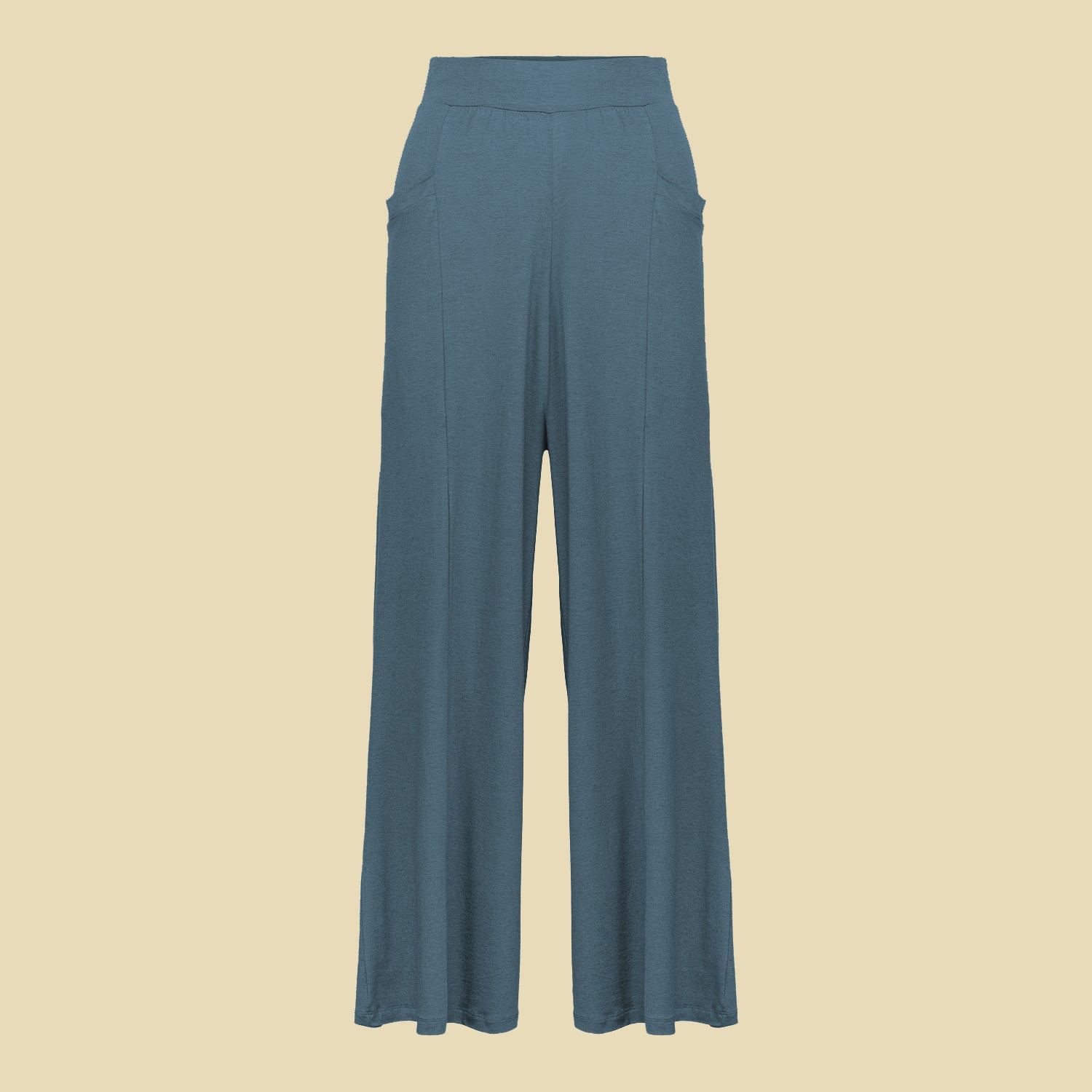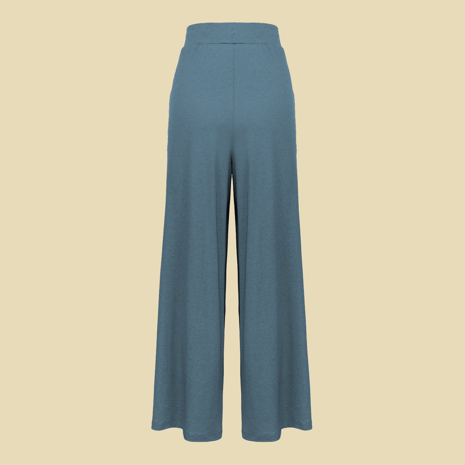 Wrap omslagsjakke har et justerbart omslagssnitt med knyting i livet. Flow slengbukse har høyt liv, bred linning og en elegant sleng som kan justeres inn nederst på beina for ønsket barrelfasong.