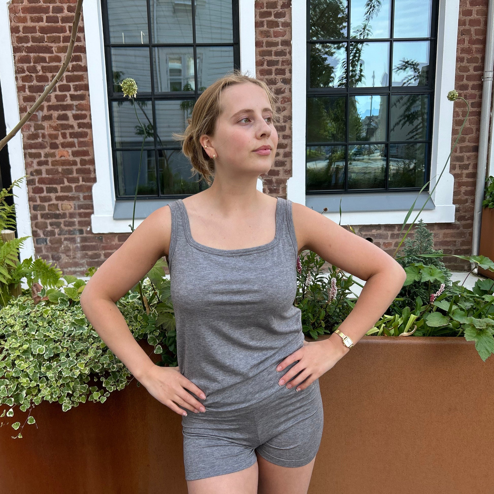 Et allsidig og funksjonelt sett i myk TENCEL™ Lyocell og merinoullblanding. Singlet med enkel, flatterende passform og brede stropper. Shorts med høyt liv, bred linning.